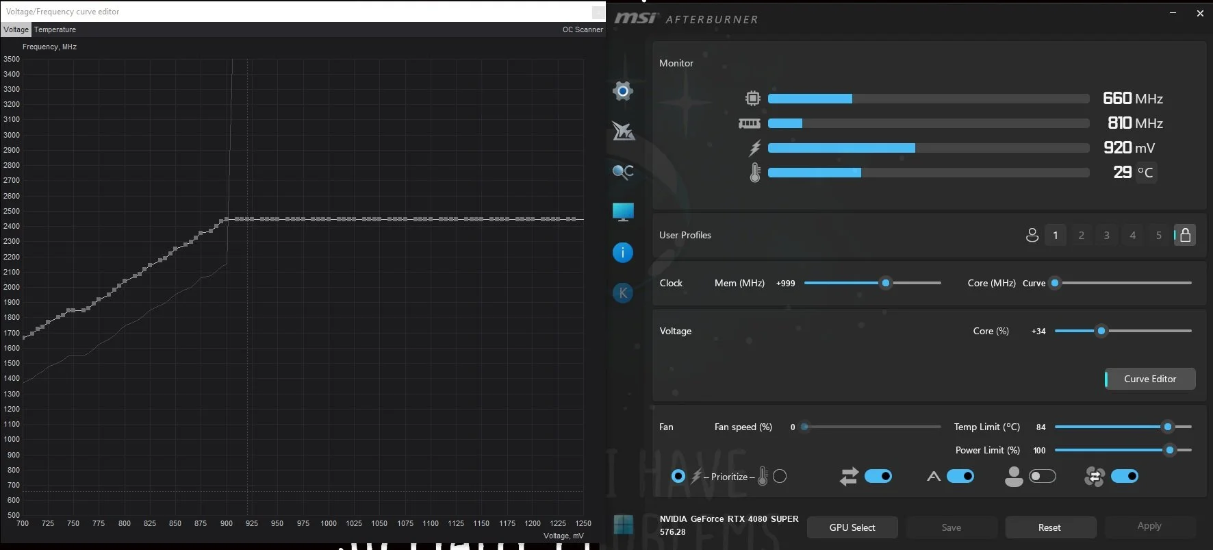 Als erstes wende ich einen einfachen und stabilen GPU Undervolt mit MSI Afterburner an. Ziel hier ist es die Temperatur stark zu senken und dabei möglichst wenig Leistung zu verlieren.